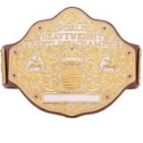 - Dual Plated Brass Metal Plates โ Features intricately detailed brass metal plates with a unique two-tone gold finish, adding depth and elegance to this championship belt.