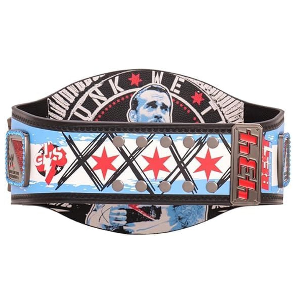 CM Punk’s Spinner Championship belt is a replica of the WWE Championship he famously held during his 434-day reign, featuring a distinctive spinning center plate, heavy metal (brass/zinc) plates, a leather strap, and designs celebrating his historic run, often with “CM Punk” logos and “434 Days” inscriptions, popular for display or cosplay by fans.